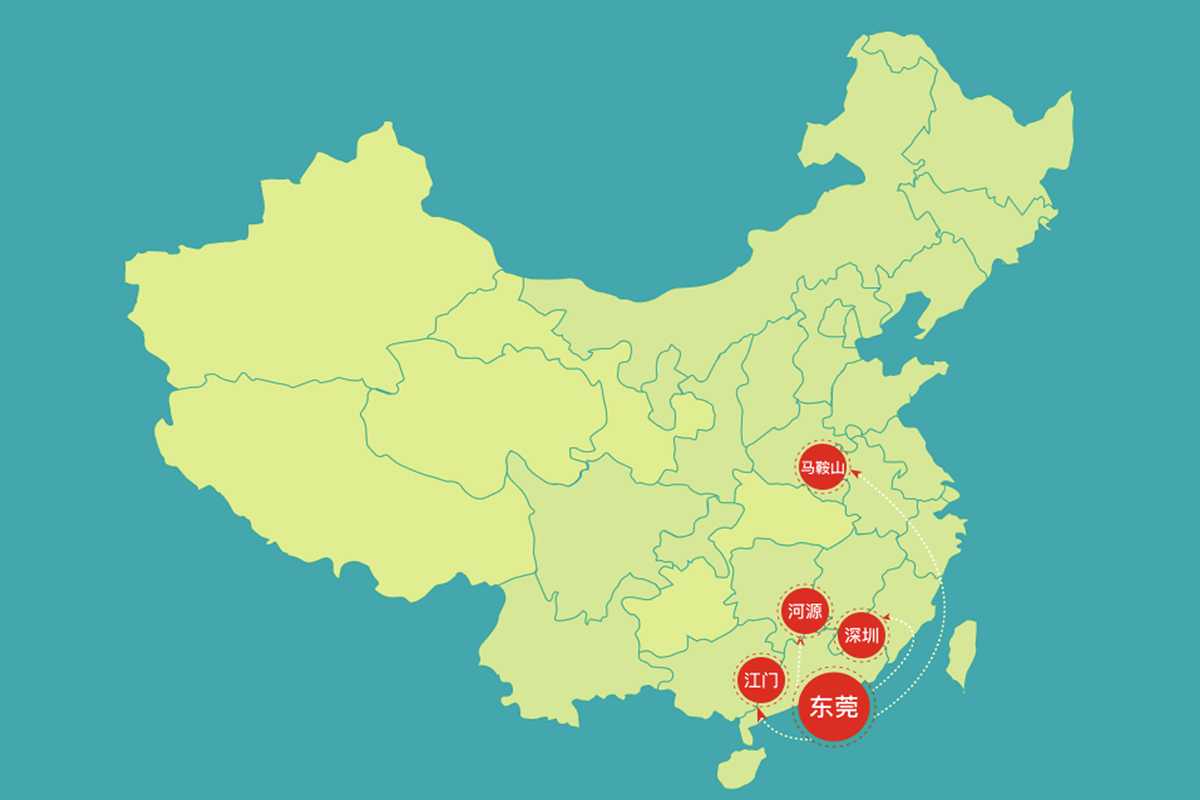 集团拥有东莞、江门、河源、深圳、马鞍山等5个生产基地,公司的生产、仓库、办公及宿舍等占地面积超过200亩,从业人员达1000余人。